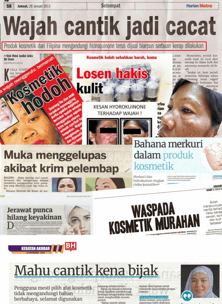 Hydroquinone & Merkuri Mungkin Penyebab Kulit Anda Mendapat Kesan Yang Sementara dan Dalam Jangka Masa Yang Panjang, Ia Merosakkan Kulit.