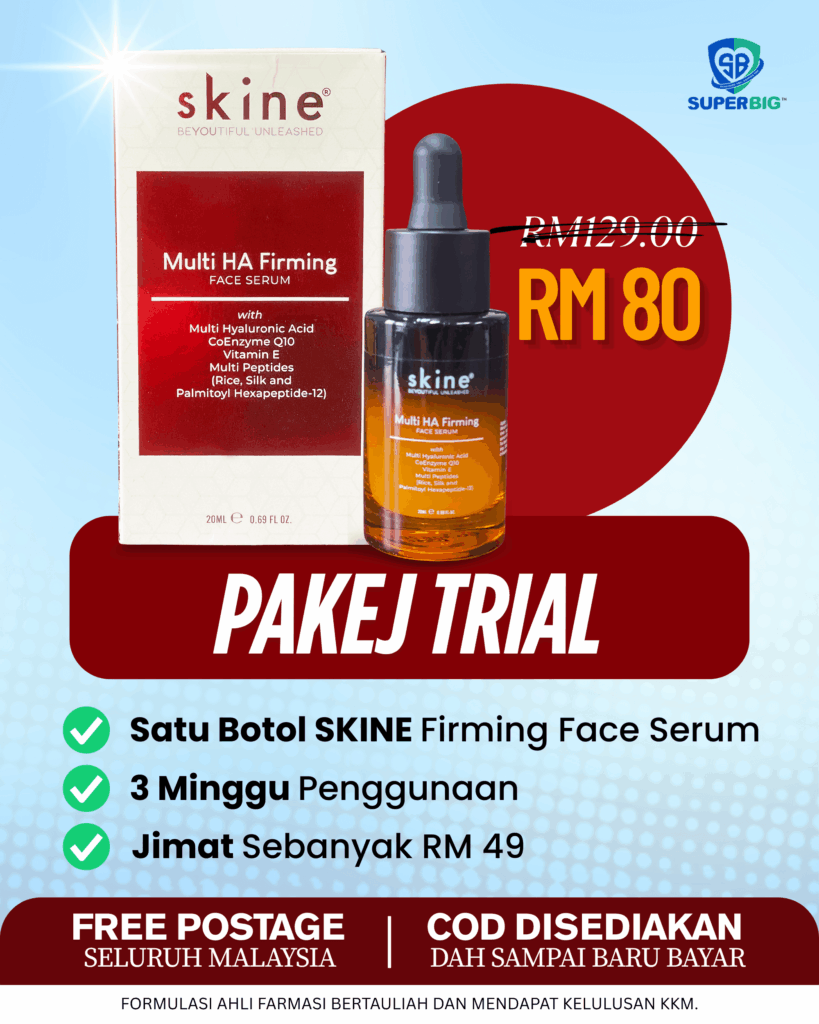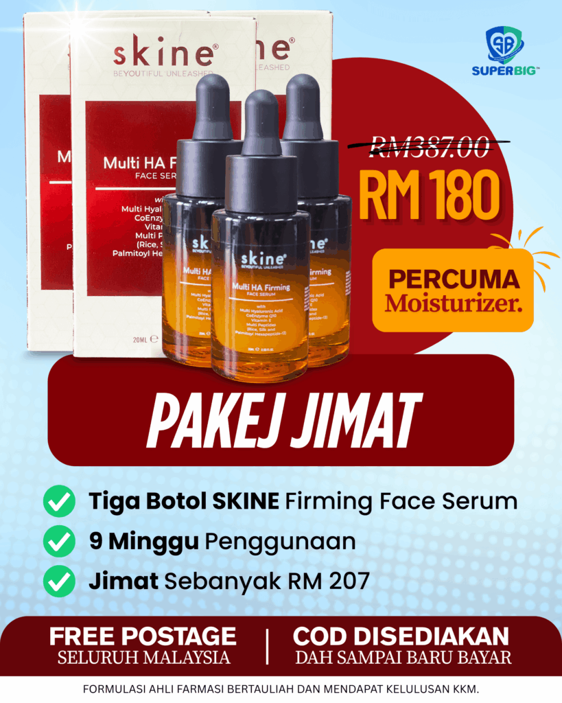 Nak kulit cerah, tegang dan berseri semula? Serum SKINE jawabannya.