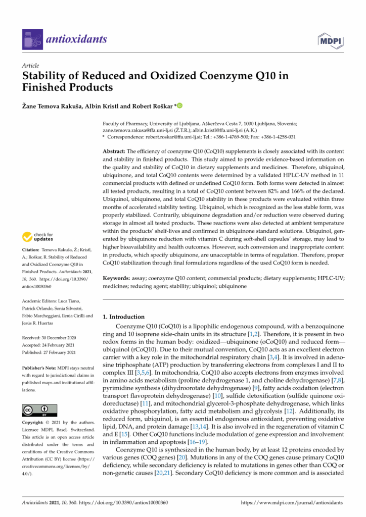 Coenzyme Q10 [CoQ10] memperbaiki tekstur kulit, mengurangkan penampilan kedutan, dan memberikan perlindungan terhadap kerosakan kulit yang disebabkan oleh UV, yang dipercayai menjadi faktor penyumbang dalam proses penuaan.